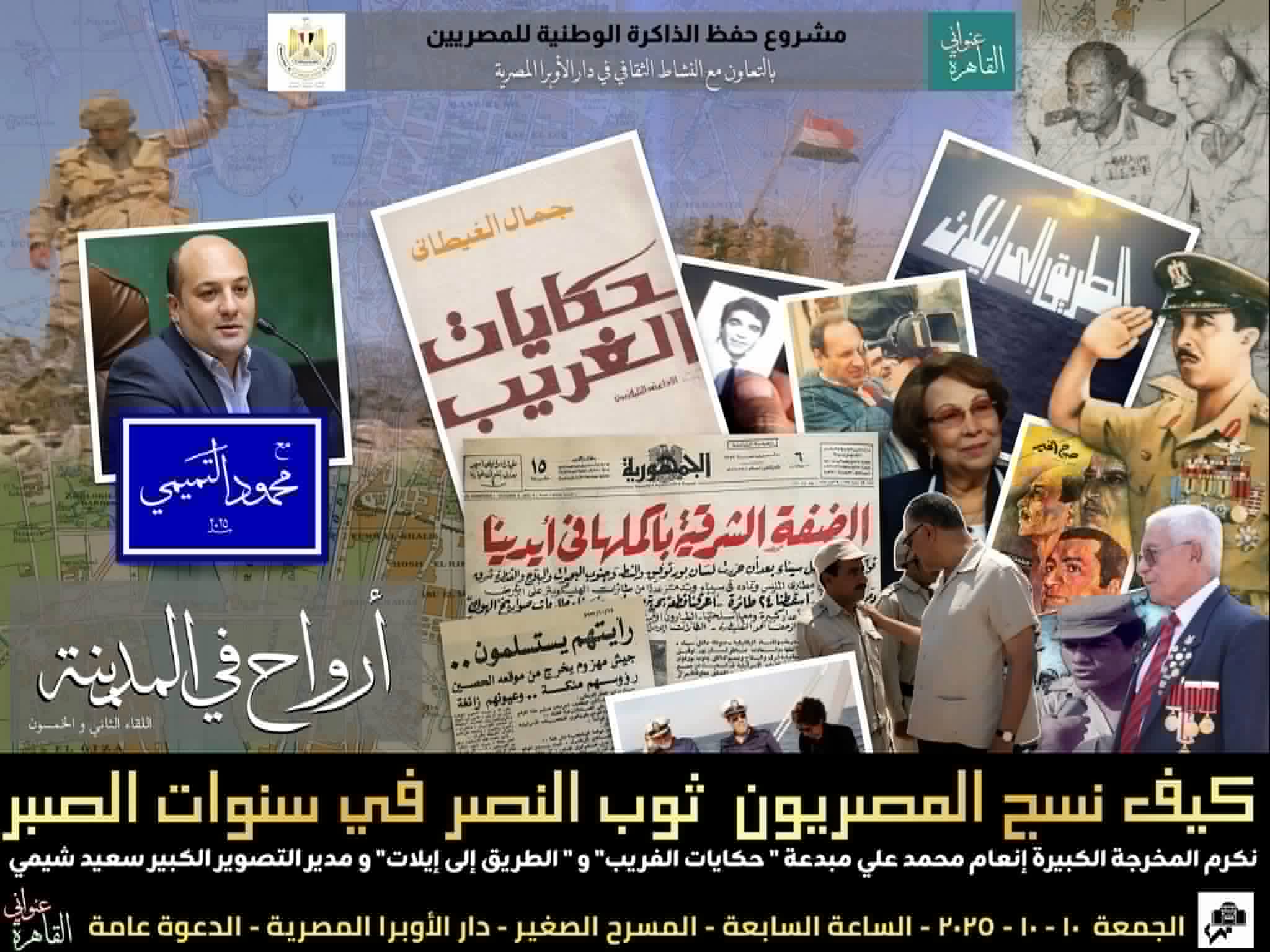 أحدث الأخبار في ذكرى نصر أكتوبر.. افتتاح الدورة الأولى لمعرض الزمالك للكتاب غدا لجنة تحكيم جائزة نجيب محفوظ تؤكد دعمها للقضية الفلسطينية وترفض خطاب الاحتلال الخالط بين اليهودية والصهيونية غدا.. انطلاق إذاعة دراما إف إم رسميا ضمن احتفالات ذكرى السادس من أكتوبر حكايات الغريب والطريق إلى إيلات.. أرواح في المدينة تستعيد ذكرى سنوات الصبر والمقاومة قبل نصر أكتوبر المجيد أكثر من 200 عنوان من إصدارات قصور الثقافة في أول معرض للكتاب بالمترو نجوم المشروع الوطني للقراءة يضيئون معرض دمنهور الثامن للكتاب غدا.. معهد ثربانتس بالقاهرة يحتفل بيوم السينما الإسبانية بعرض فيلم تاسيو مهرجان ومنتدى مصر الدولي لكنوز الإبداع يطلق دورته العاشرة في شرم الشيخ في ذكرى النصر.. أكتوبر 1973 السلاح والسياسة بين ميادين القتال وكواليس القرار افتتاح معرض أصداء للخزف ضمن فعاليات مهرجان دي-كاف في دورته الـ13