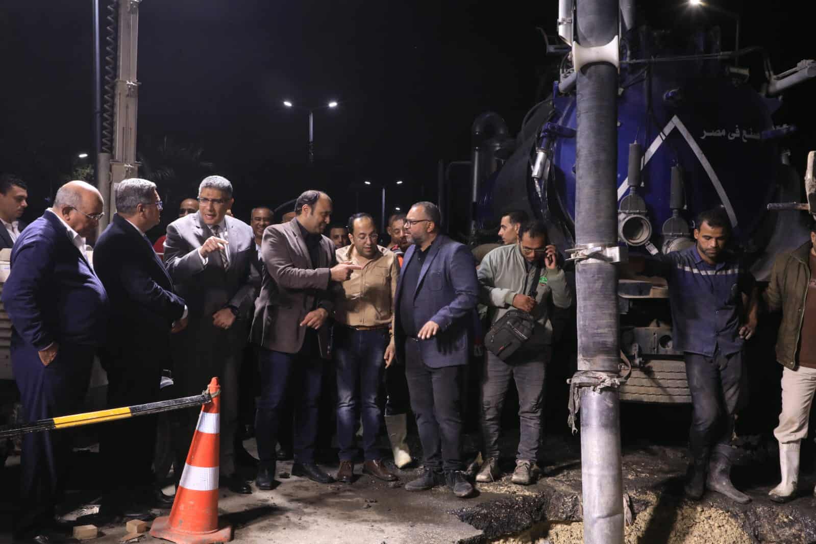 محافظة الجيزة يتفقد ميدانيا أعمال إصلاح الكسر المفاجئ لخط المياه الرئيسي قطر 1000 بشارع ربيع الجيزي