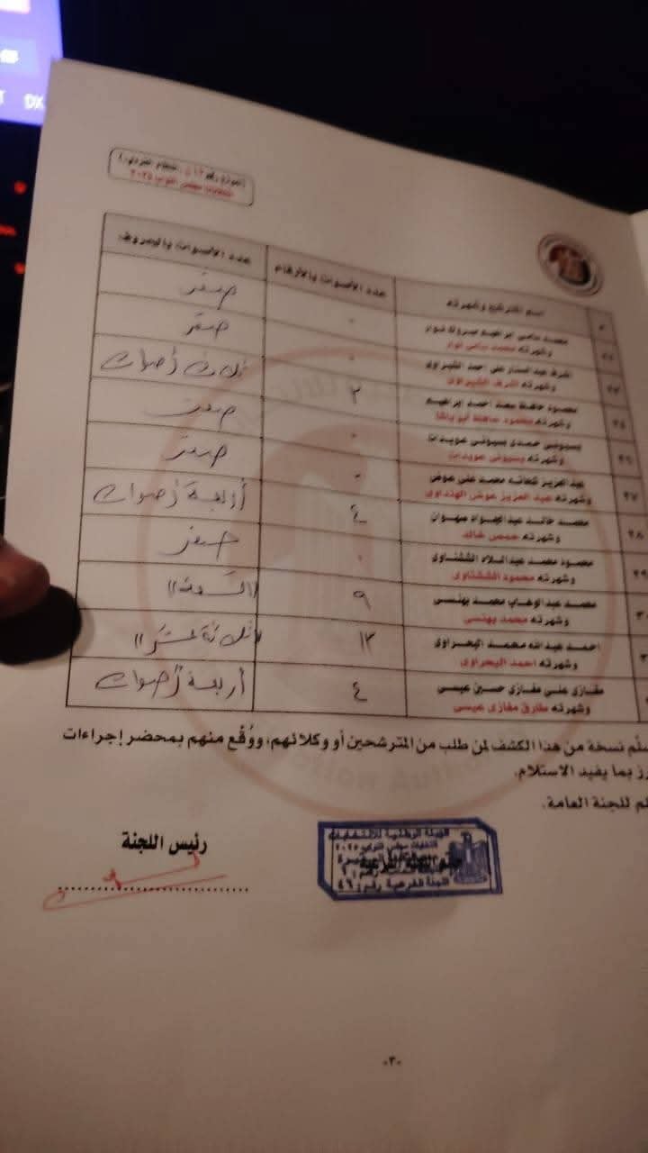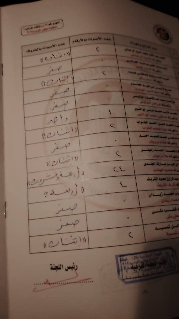 ووفقا لعملية فرز الأصوات، فقد بلغ عدد المقيدين في اللجنة 7278 ناخبا، حضر منهم 518 ناخبا للإدلاء بأصواتهم، حيث جاء عدد الأصوات الصحيحة 475 أصوات، والأصوات الباطلة 43 صوتا.