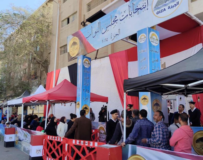 وتوافد المواطنون منذ الساعات الأولى على مدرسة عثمان بن عفان للإدلاء بأصواتهم، واصطفوا في طوابير منتظمة أمام بوابة اللجنة الانتخابية تحت مظلة كبيرة زُينت بألوان العلم المصري.