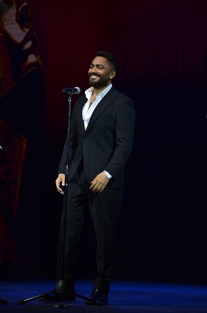وكان تحوّل مسرح "جراند نايل تاور"، في ختام حفل افتتاح الدورة الثامنة لمهرجان نقابة المهن التمثيلية برئاسة الدكتور أشرف زكي، مساء أمس السبت، إلى مظاهرة حب وتكريم لرموز المسرح المصري، من يعقوب صنوع إلى سمير غانم ومحمد صبحي وعادل إمام، وذلك من خلال أغنية "حكاية مسرح" التي قُدّمت 3 مرات متتالية، الأولى عبر الشاشة كـ"كليب" مُصمَّم بتقنيات الذكاء الاصطناعي، حيث يلتقي تامر خلاله بنجوم وفناني المسرح المصري، ثم من خلال غناء تامر لها مباشرة "لايف" أمام جمهور الافتتاح، وأخيرًا حين أعاد غناءها بمشاركة أكثر من 500 ممثل وممثلة من شباب الفرق المسرحية المشاركة في المهرجان.