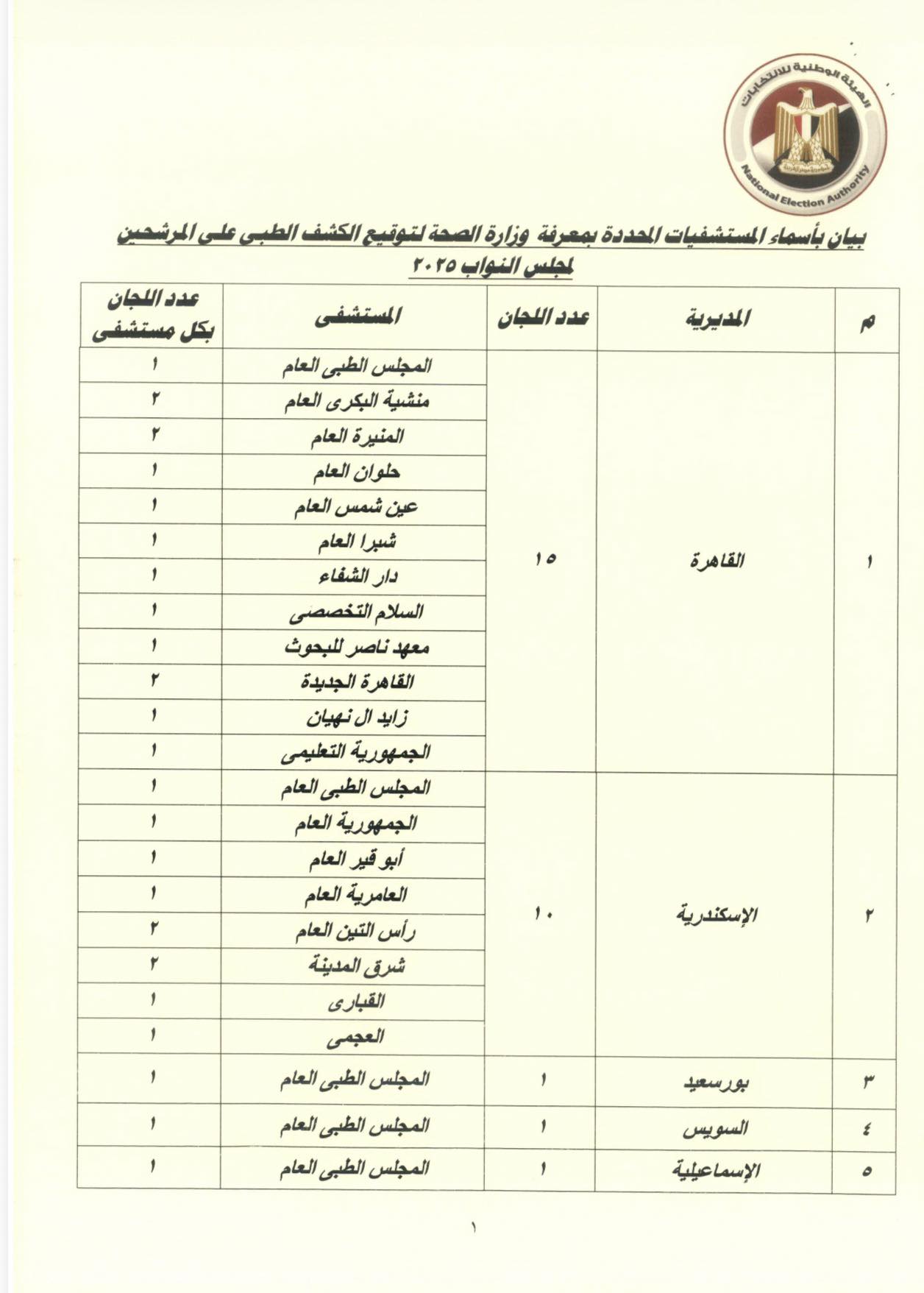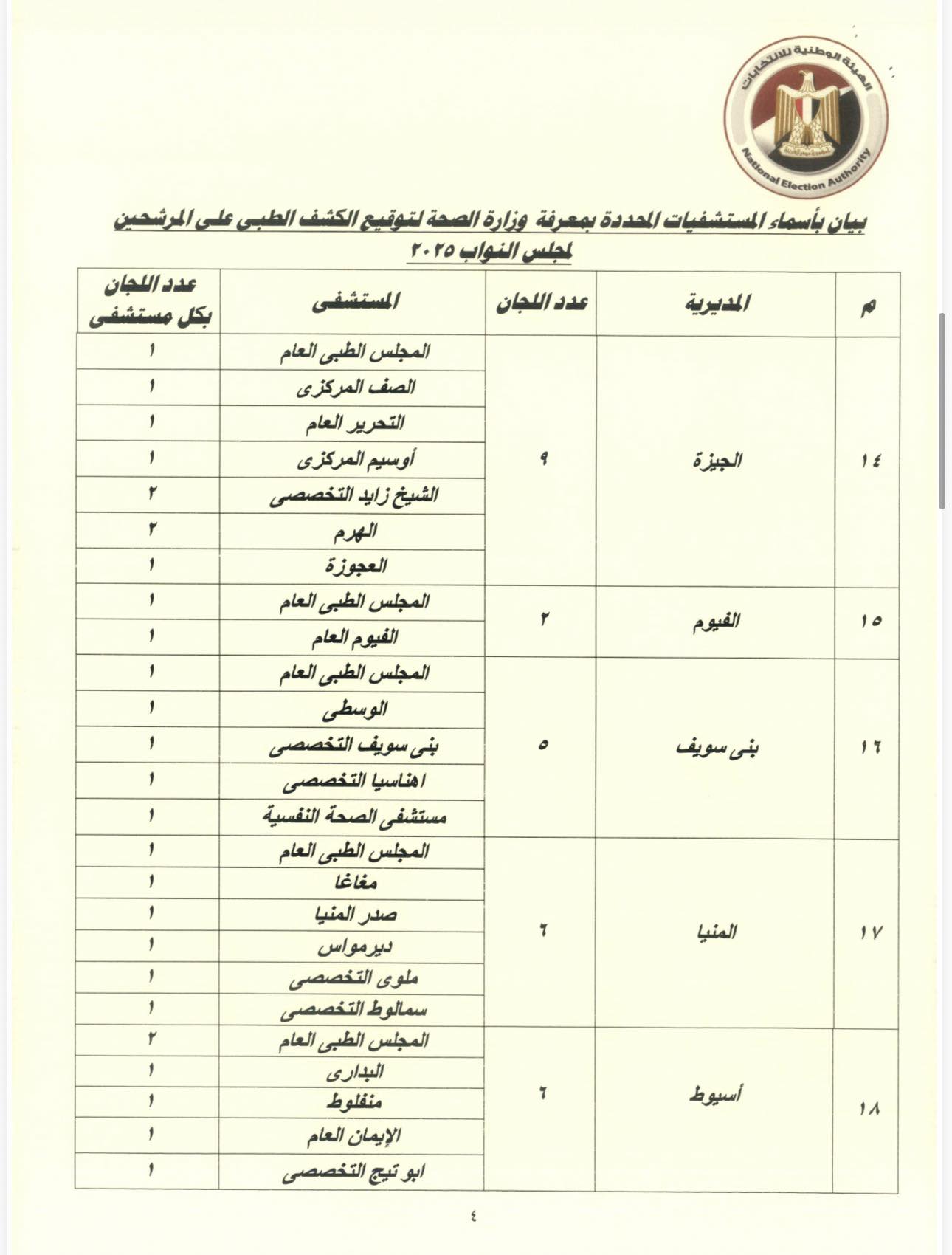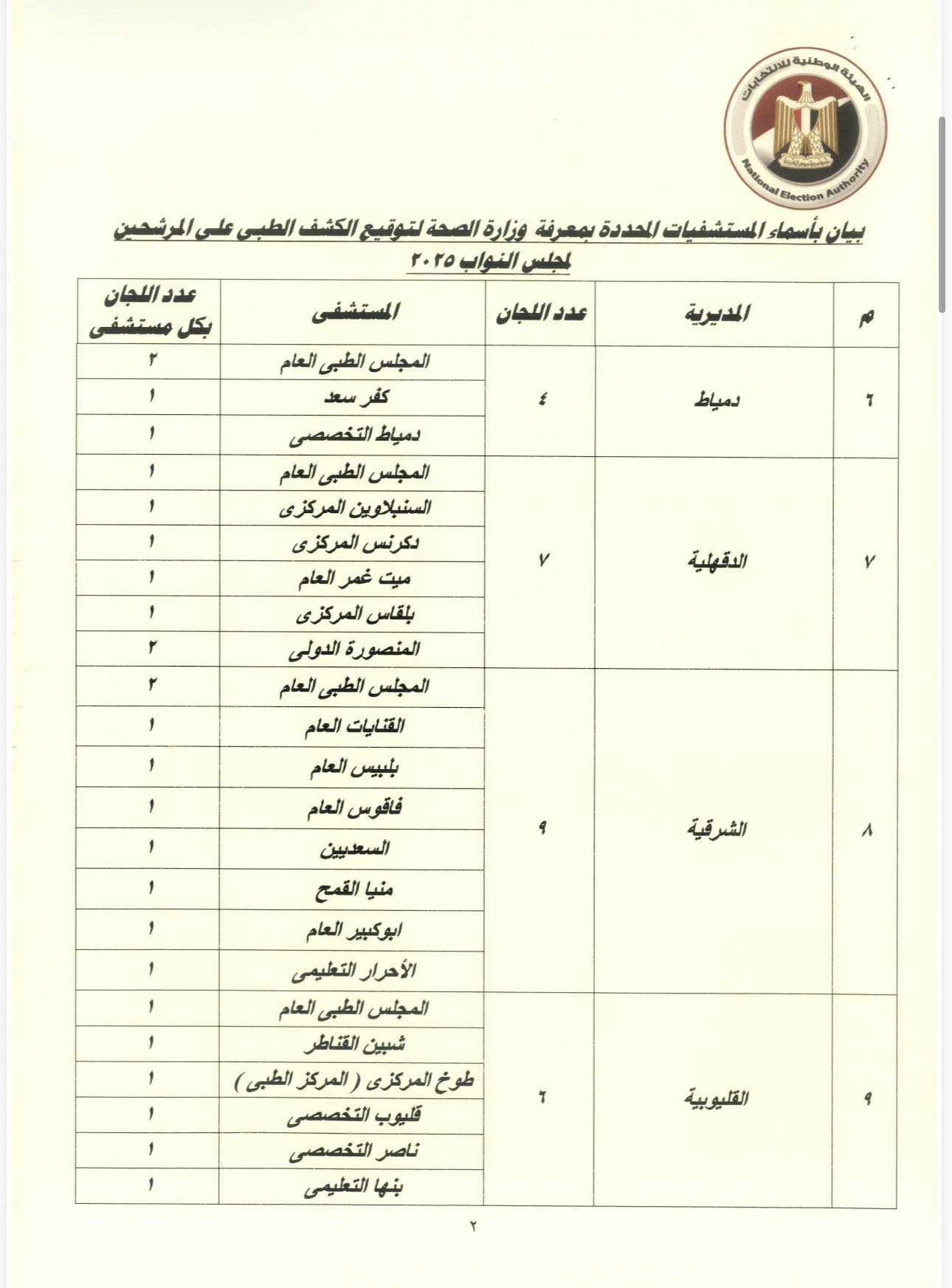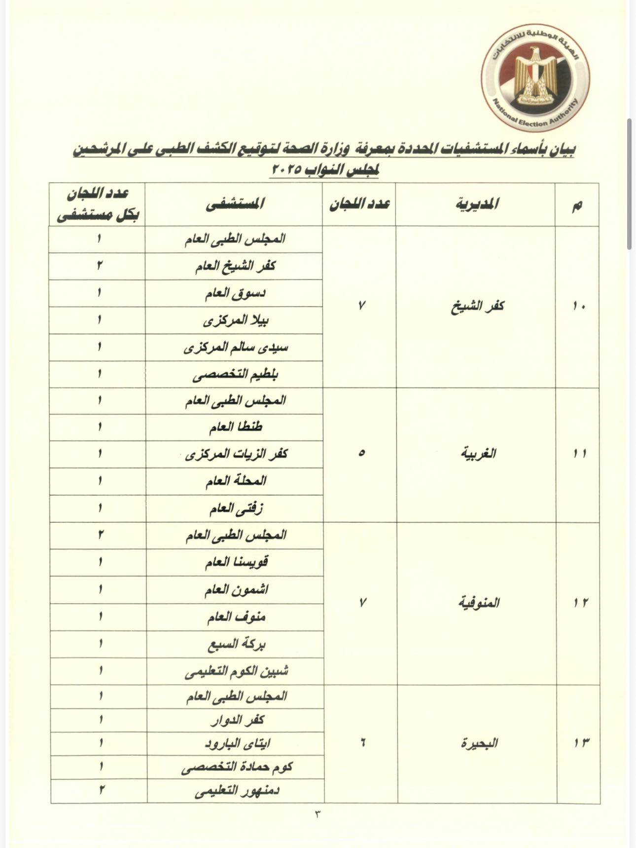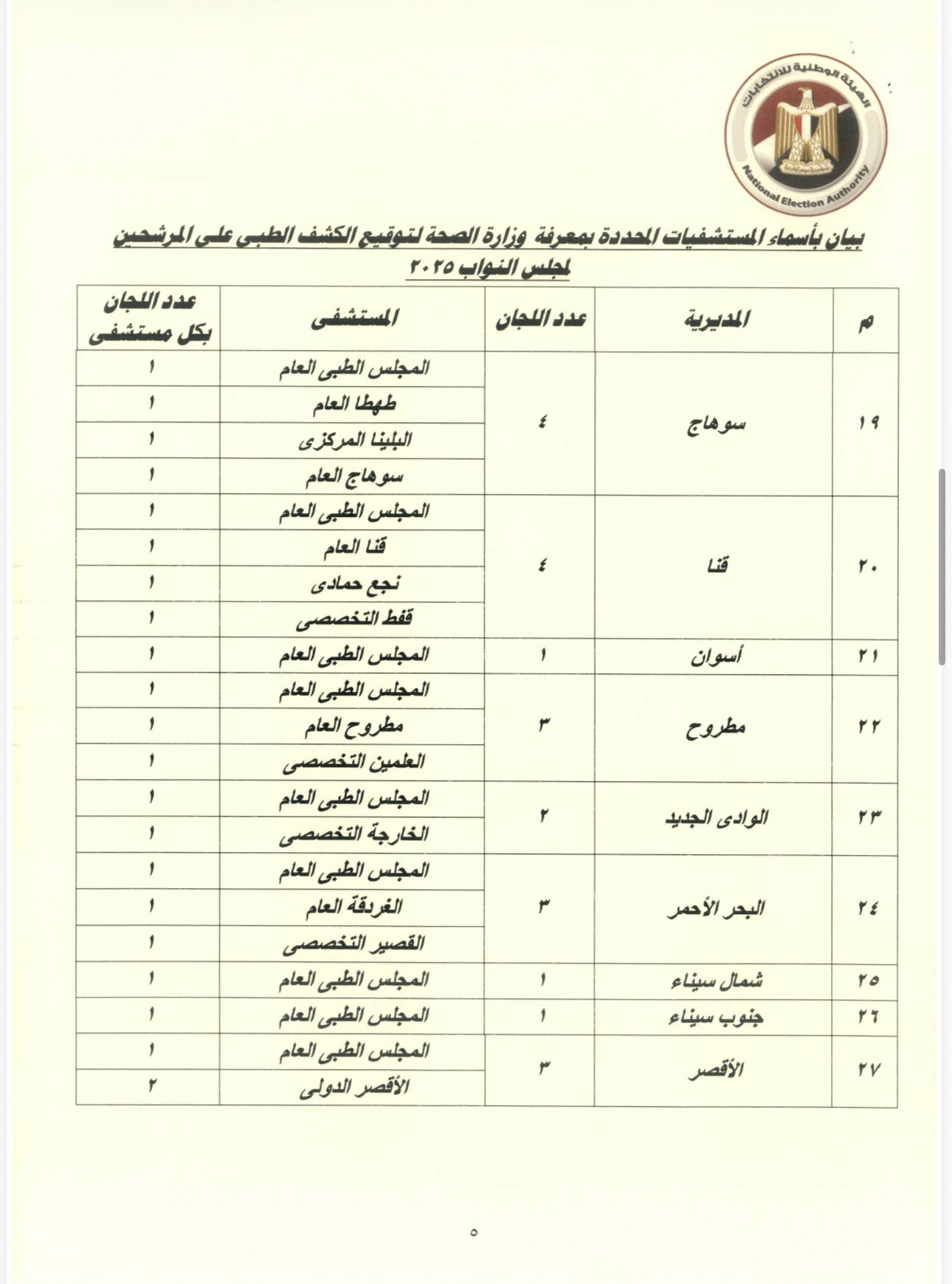 وأكد القرار أنه على الراغب بالترشح ضرورة التوجه لأحد المراكز الموجودة بالقرار لتوقيع الكشف الطبي عليه لبيان خلوه من الأمراض البدنية والذهنية والنفسية بالقدر الكافي لآداء واجبات العضوية، وأنه ليس من متعاطي المخدرات والمسكرات وذلك بالمستشفيات والمعامل التي حددتها وزارة الصحة، وبالنسبة لطالبي الترشح المقيمين خارج جمهورية مصر العربية يتم إجرائها بالمستشفيات المعتمدة لدي السفارات والقنصليات.