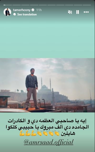 وعلق تامر: "إيه يا صاحبي العظمة دي والكادرات الجامدة دي.. ألف مبروك يا حبيبي كلكوا هايلين".